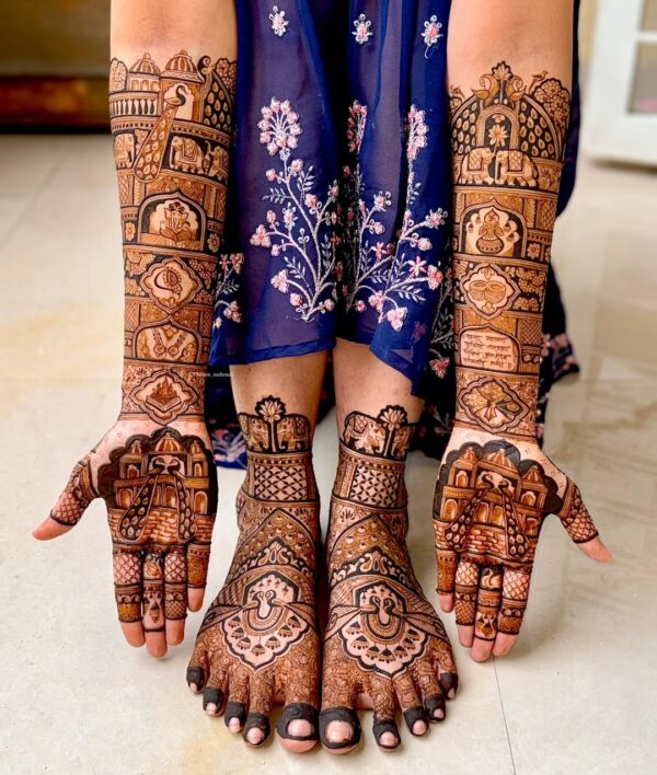 Bridal Mehendi Package 1 – Above 4 finger of Elbow on Hand and Above 4 to 5 Finger Ankle on leg